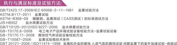 本设备主要于检测金属及其合金、金属覆盖层、有机覆盖层、阳极氧化膜和转化膜的不连续性,如孔隙或其他缺陷。此款盐雾机试验室加热采用热辐射加热方式保持测试空间所需温度,从而保证测试的精度。
