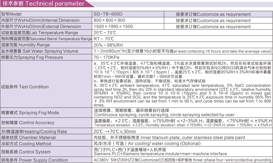 无论有无防护,金属材料的腐蚀均受到许多环境因素的影响,随着金属材料种类和环境类型的不同,环境因素的影响程度也会不同。设计实验室试验的目的是模拟那些能加速金属材料的最重要影响因素的作用。本试验设备是用来模拟和强化暴露在含有盐污染条件和来自工业的腐蚀性气体或可能促进腐蚀的交通环境中的户外气候的环境影响。本设备用于模拟人工大气中的腐蚀试验 产品交替暴露在腐蚀性气体、中性盐雾及干燥环境中的加速腐蚀试验。Whether there is protection or not, the corrosion of metal materials is affected by many environmental factors. With the different types of metal materials and environmental types, the influence degree of environmental factors will be different. Laboratory tests are designed to simulate the effects of the most important factors that accelerate metal materials. The test equipment is used to simulate and enhance the environmental impact of outdoor climate exposed to salt-contaminated conditions and corrosive gases from industry or traffic environments that may promote corrosion. This equipment is used to simulate corrosion test products in artificial atmosphere alternately exposed to corrosive gases, neutral salt spray and dry environment for accelerated corrosion test.