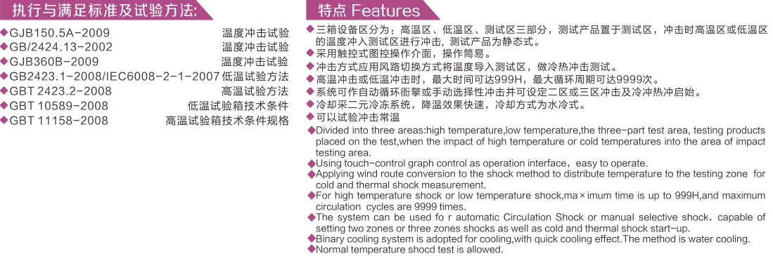 Thermal Shock Chamber  is used to test the capability of material structure or composite materials to withstand the continuous environmental changes between extremely high temperature and low temperatures during a short period, and therefore understand the chemical changes or physical damages caused by expansion from heat and contraction from cold in the shortest possible time. It is applicable to Lithium-ion battery,metals, plastic, rubber, electronics amongst other ,Lithium-ion battery. The test result can be used as a reference or basis for product improvement.
